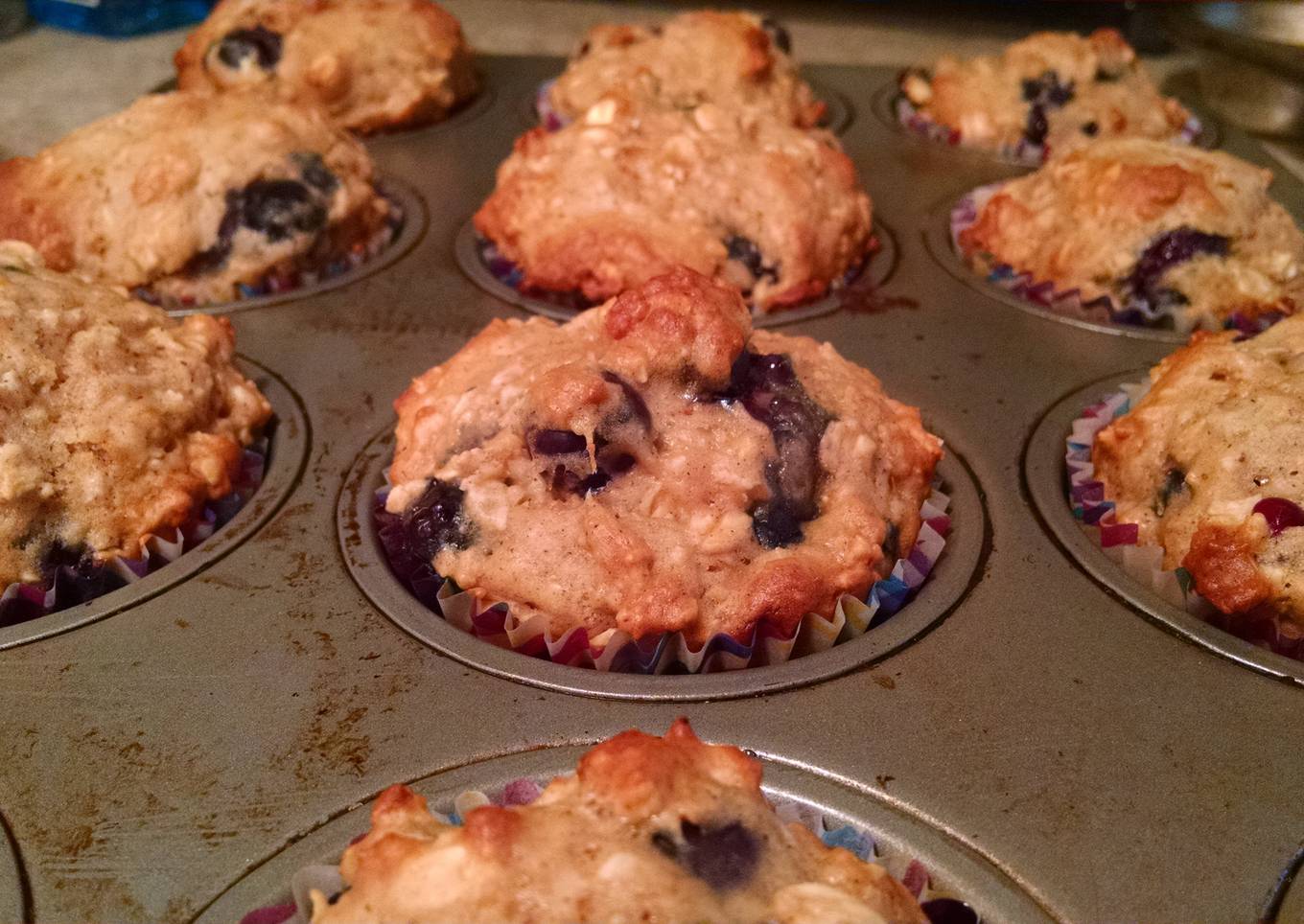 - Next add yogurt, oat mixture (batter will be lumpy) gently stir in blueberries. Divide batter among 12 muffin cups.