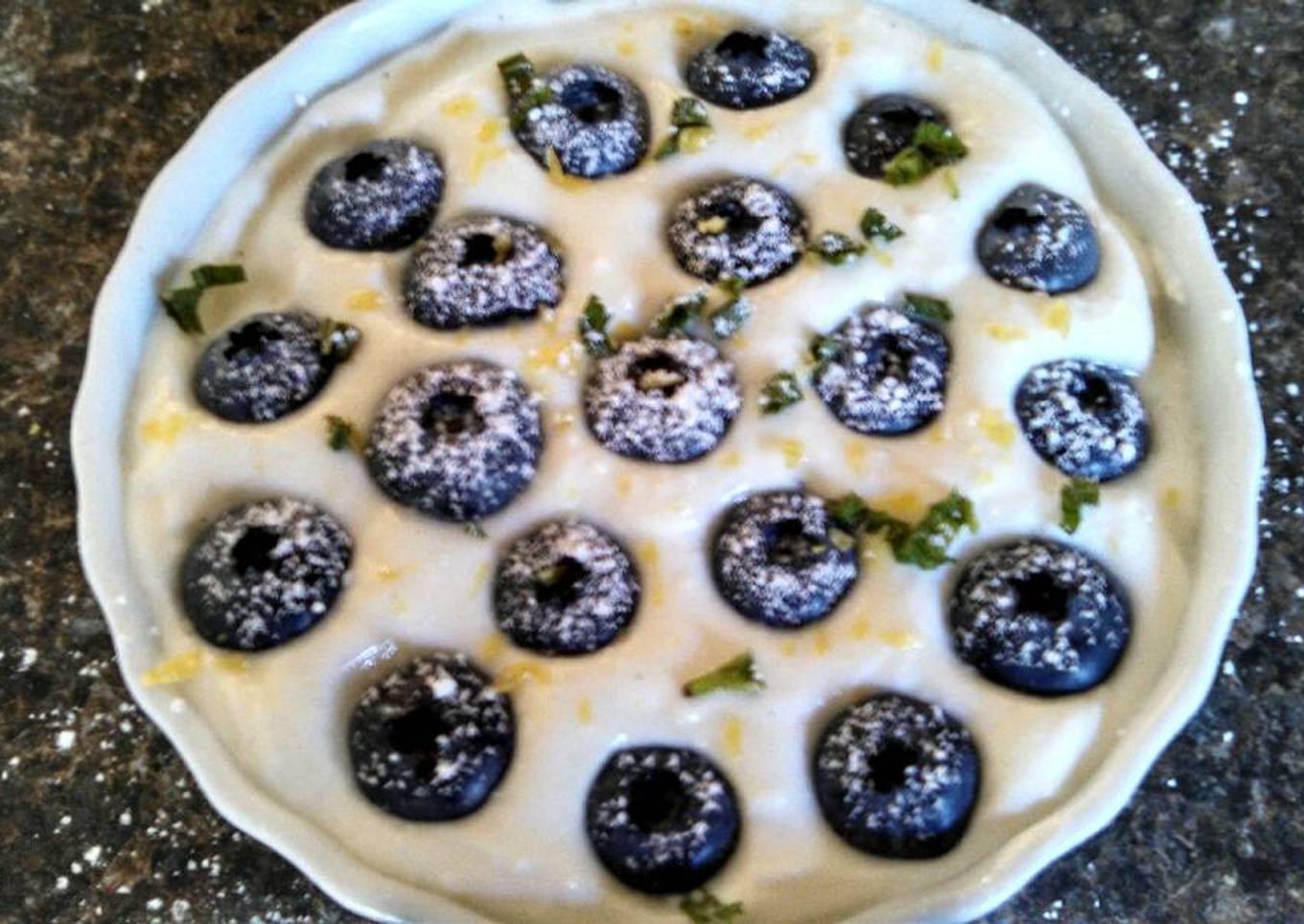 - Decoration with fresh blueberries, lemon zest, mint and powdered sugar. Chill it for at least one hour.