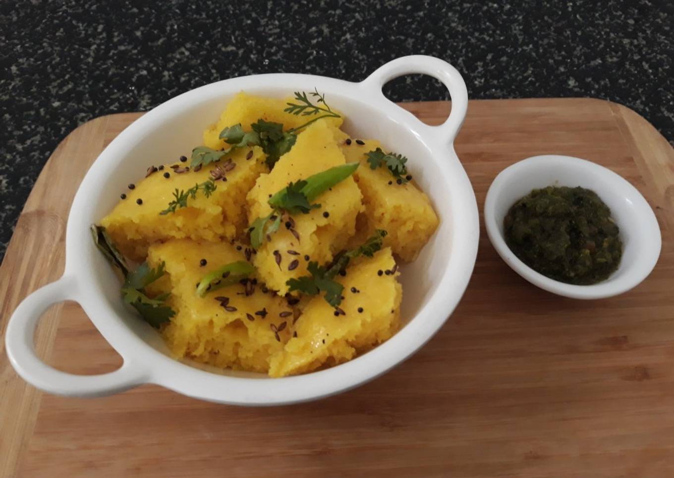 - Serve hot dhokla with tangy chutney