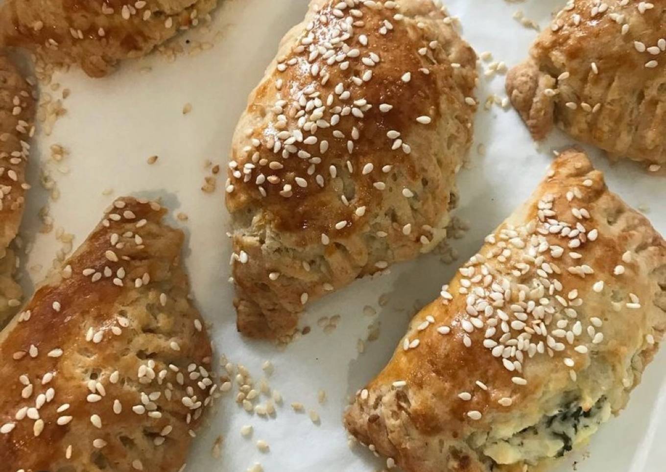 Repeat the same process until all of the pieces of dough are filled. - Brush the tops with an egg yolk and sprinkle with sesame seeds.