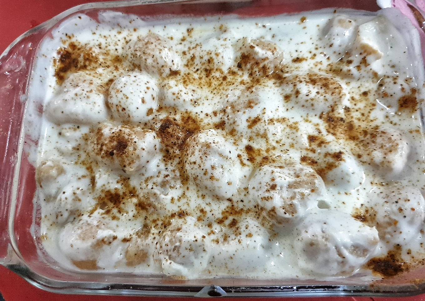 - Deep fry small balls, into oil, fry on slow flame, fill karahi with balls, fry them to a golden brown, remove in a plate and cool down then soak them in big pan full of water,with 1tbsp salt, soak balls for at least 2hours, squeeze out water from balls, put them directly into dahi mixture