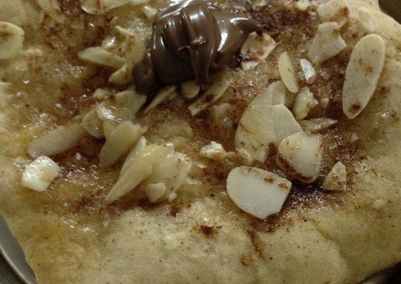 For me things that ring a bell of dessert are nuts, cinnamon, sugar and nutella. So I used up all this in the naan. :)