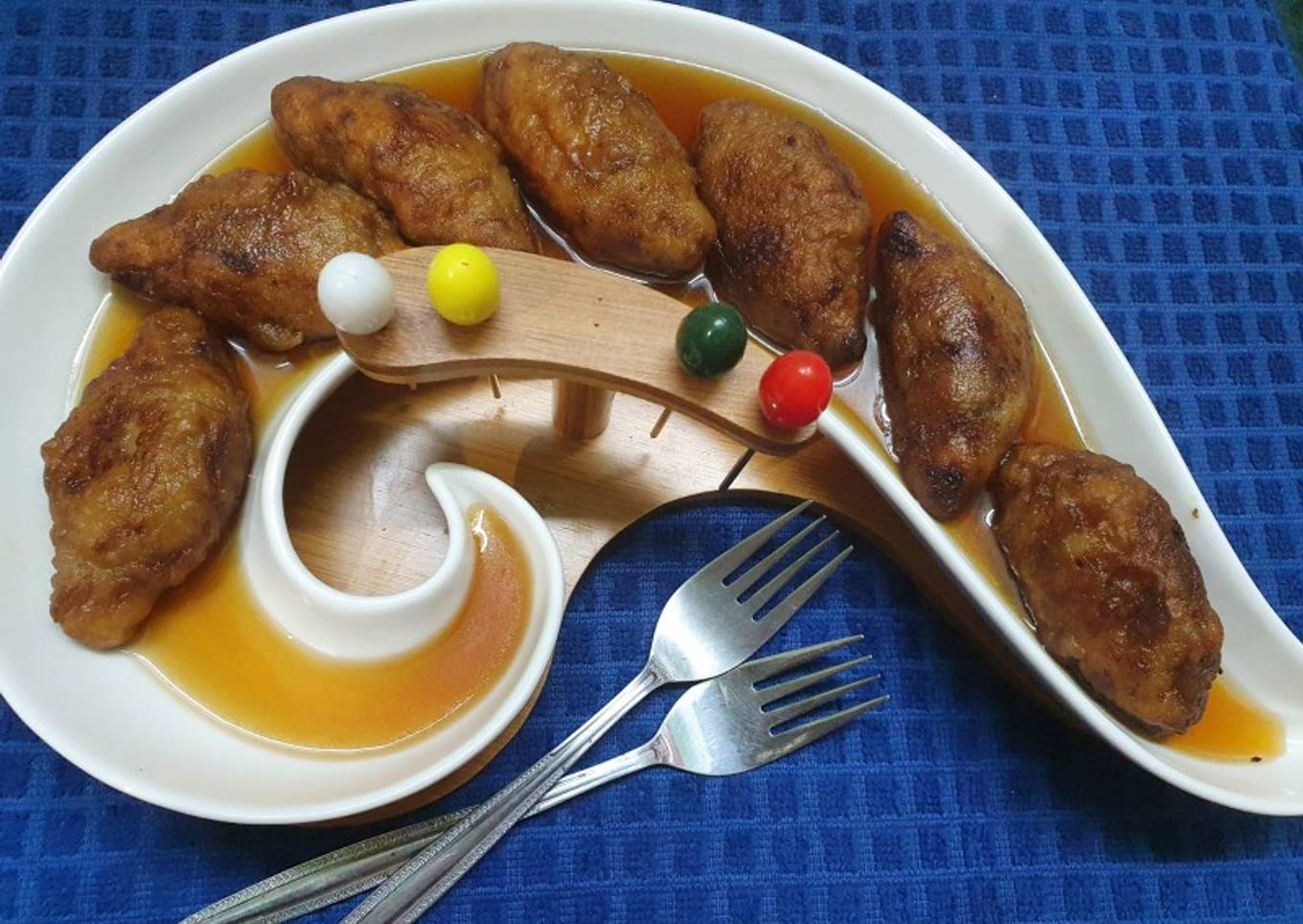 Ranga Aloor Rosomoti or Fried Sweet Potato Dumplings